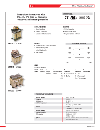 Input line reactors are essential for 6 pulse VFDs and DC drives. They reduce THDi slightly, protect the rectifier from mains disturbances and improve the True Power Factor.