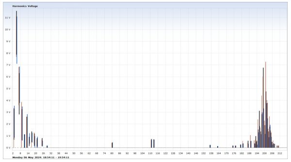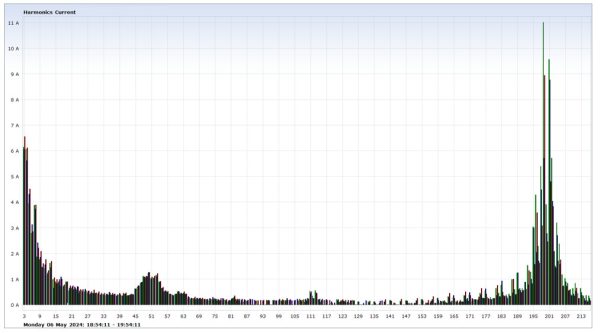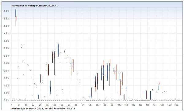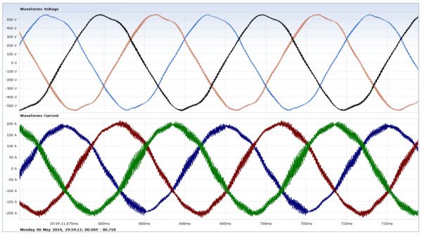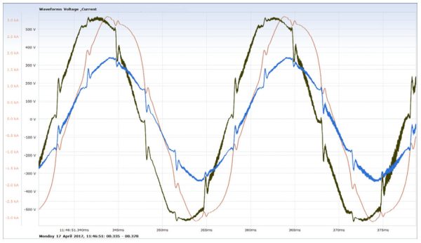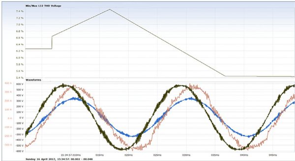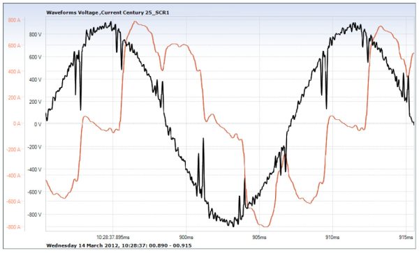 Large DC drives – DC (SCR drives have been largely overtaken over the last 20 years by VFDs However, in many industries, they are still as used. The waveforms below are facility with 3 x 1200kW and 2 900kW DC drives. The client purchased an active filter from reduce the THDu. However, within 11 days, the active filter failed and was repaired under warranty Almost three weeks later, the active filter failed again.