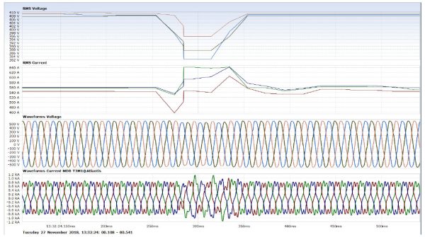 Chiller plant resonance – Large chiller plant operated for 5 years with regular MV PFC capacitor failures. During that time, four PQ companies visited, none could find resonance as each event lasted <8ms (< half an ac cycle). SPQ captured first event within 41 mins and fourteen more in next three days.