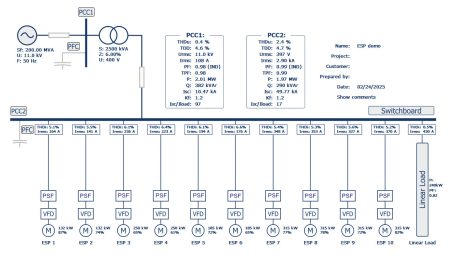 RiteSineLab harmonic simulation software simulates 6 pulse VFDs, DC drives, programmable current source devices, PFC and linear loads. For mitigation, both series passive filters and active filters can be modelled. Up to 30 nodes can be accommodated.